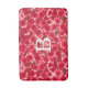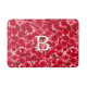 Modern badmatta med grafik blommigt med ett monogram av anpassningsbar i hela mönster av dahlias - digitalkonst med blandad media i djup kinesisk röd/krimson och vit