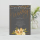 Den här inbjudan har en elegans som är perfekt för din speciella dag. Den här designen har blommigtar med mjuk gult med kopparaccenter på en grått-bakgrund med kol. Lägg till informationen om bröllop för att slutföra utseendet.