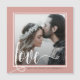 Modern, trendig kärlek fotot Alla hjärtans dag. Utformningen innehåller ett foto av dig och ditt partner- och kalligrafskript kärlek på en ro guld-bakgrund.