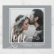 Modern, trendig kärlek-fotomousserande vin-Flaska-etiketter. Utformningen innehåller ett foto av dig och din partner och ett calligraphy-skript kärlek på en grått-bakgrund. Perfekt som för bröllop firande, förlovningsfest osv.