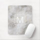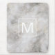 Den här musmattan har en modern grått-marmordesign med ett vitt monogram i ett kvadratiskt ram.
