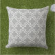 Snyggtens kudde har en modern dekorativ marockansk quatrefoil mönster i vitt. Anpassa gråttets bakgrund för att koordinera med uthuden.