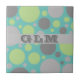 Modern Grått och Grönt Bubbles Monogram Kakelplatta