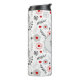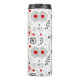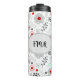 Sötens design har ett modernt grått/rött/vitt blommönster med centrerad anpassade oval som anpassar sig efter monogram eller namn.