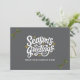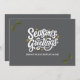 Detta moderna grått helgdag-kort skickar varmt önskemål till kunder, kunder och kolleger. Den här professionellen har vit typografi med elegant som läser "Säsonhälsningar" med delikata gröna accenter, men det är perfekt för att uttrycka tacksamhet och sprida glädje från ditt företag eller team. Anpassa med ditt affärs-namn och anpassningsbar-meddelande på baksidan för en tankfull säsong-beröring.