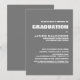En modern inbjudan till grått och vit studentfest.