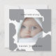 Välkomna din lilla till världen med detta moderna och minimalistiska baby-annonskort med ett sött fyrkantigt foto ram, grått vattenfärgsfärgat stänk och klassisk skrivmaskin-stil. Det är en enkel och charm blandning av perfekt - perfekt för att dela baby:s första foto och namn med vänner och familj. Oavsett om man föredrar en introduktion i kort eller ett hjärtligt budskap på baksidan är detta tillkännagivande ett vackert sätt att markera denna glatta milstolpe.
