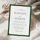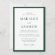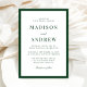 Celebrate your wedding day with this modern green border wedding invitation, featuring a bold dark green frame that adds depth and sophistication to a clean, minimalist layout. The rich green border creates a refined contrast against the white background, while classic serif typography and a subtle script accent lend a timeless, elegant feel. Designed to suit formal ceremonies, modern celebrations, and classic venues alike, this invitation offers a polished foundation that complements a wide range of wedding styles. Personalize the wording to create a cohesive invitation that sets a confident and elevated tone for your wedding stationery suite.