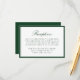This reception enclosure card is framed by a rich dark green border and features “Reception” in graceful calligraphy with your reception details arranged below in classic serif text. The deep green tone brings depth and formality to the layout, creating a timeless presentation well-suited for estate, traditional, and modern classic wedding settings.
