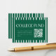 Modern Green Striped College Fund QR Code Enclosure Card. A minimalistic and bold, striped green college fund enclosure card, designed with large, bold typography. Add your custom message, and donation website in a QR code.