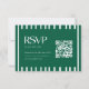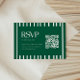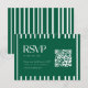Modern Green Striped Graduation Party QR Code RSVP Card. A minimalistic and modern, dark forest green and white graduation celebration RSVP card, designed with a striped pattern. Add your RSVP deadline date, and your website written out and in a QR code format.