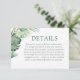 Communicate your important wedding information with this elegant tropical details card, featuring hand-painted watercolor monstera leaves, palm fronds, and lush island greenery. Perfect for destination, beach, boho, or summer weddings, this insert provides space for accommodation info, travel details, schedules, or dress code. Fully customizable, it completes your tropical stationery suite with natural charm and modern style.