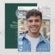 Perfect for high school or college graduates, this customizable graduation announcement makes it easy to add your favorite senior photo, graduate name, school, class year, and party details. The deep green background paired with timeless white typography creates a sophisticated and modern graduation keepsake for family and friends.