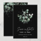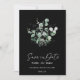 Den här moderna, gigantiska, svarta bröllop spara datum-designen har en enkel blandning och matchar koordineringen av stilar i svartvitt med delikat grönt inslag som tillför en fantastisk blomning runt enkel sofistikerad typografi och underbart kalligrafiskt skript. Vattenfärgen eukalyptus och andra botaniska löv är vackert genomgående, med mörk emerald bleknande i en ombre effekt på ljusmint grönt - för att lägga till tillräckligt med ett klassligt drag av rustik till en neutralt contemporary baksida. Denna fantastiska samling skulle helt skapa ett luft av artig elegans för din formella eller avslappnad dröm bröllop eller andra speciella evenemang. Om ni har några frågor eller speciella förfrågningar kan ni, precis som med alla våra planer, vara vänlig och nå ut.