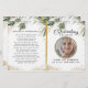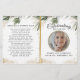 Anpassa det här moderna begravningsprogrammet för elegant med eget foto och egen text för att skapa en speciell hyllning till ditt barn. Ett 'In Loving Memory'-program med Blommigt Foliage botanical and guld accent Memorial Program. På framsidan finns ett foto av din älskade, deras namn, data, minnesplatsen och evenemangets datum. På insidan finns en obituär serviceordning, och på baksidan finns ett tackkort, och på butikens plats finns också andra konstruktioner som erbjuder botaniskt grönt med ro och löv design och glitter/gyllene accents och Eucalyptus foliage för att uppfylla alla krav.