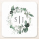 Modern Greenery White Bröllop Monogram Underlägg Papper Kvadrat
