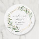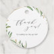 Rustik vattenfärg botanisk bladgrönt och faux guld foil löv och geometriskt ram, med parets namn och bröllop datum, och tack för informationen om baksidan, enkla och elegant, underbara märkre för bröllopsstöd för sommarsportig bröllop, vår botaniskt trädgårdsbröllop. Visa alla matchande delar i samlingen