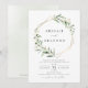 Modern gienery bröllopsinbjudan innehöll en rustik vattenfärg botaniskt bladverk med faux guld foil löv och geometrisk ram, enkel och elegant, underbar för sommarlotsbröllop i bröllop, vår. Visa alla matchande delar i samlingen