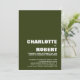 Bjud in dina vänner och nära och kära med denna stilrena minimalistiska gröna med vit text bröllopsinbjudan med ett foto av det nygifta paret på baksidan för att dela din glädje i ditt senaste äktenskap. För bästa resultat anpassa din valda bild för baksidan av inbjudan till ett 5 x 7-förhållande.