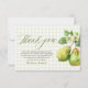 Säg tack i söt, tidlös stil med detta moderna gröna gingham "Perfect Pair" bröllopsfest tackkort. Med en mjuk grön gingham-bakgrund, ömtåliga vattenfärgspäron och elegant scripttypografi känns denna design fräsch, romantisk och otroligt charmig.