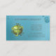 Yrkesmässig modern tittar grön visitkort för konsulent för jordlogotypsustainability. Ett underbart kort för den rådgivande sustainabilityen. Det rena vanliga kortet uttrycker circularity och hållbar design. Kortet med stilfull ny jord med återvinningpillogotypen ska också arbete som var underbart för trädgårdsmästare eller landscapers och återvinningspecialist. Det gröna jordklotet med gröna pilar, och stylized träd och fåglar föreställer ekologi och återvinning. Blåttvatten tappar bakgrund symboliserar extraktet av vatten och circularity.