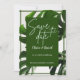 Modern Tropisk Spara Datum-inbjudan i gröna och vita temafärger – det perfekta sättet att sätta tonen för din kommande fest för ett destinationbröllop med en touch av exotisk charm och samtida elegans.