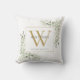 Elegant vattenfärg grönska monogram namn kastkudde med en guldmonogram initial. Designad av Thisisnotme©