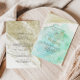 Den här moderna kalligrafinbjudan till bröllopet i grönten i guld är perfekt för ett bröllop i Österrike. Den enkla utformningen och utformningen av eleganten har skripttypografin klassisk och finare i guld och grönt. Spara papper genom att på baksidan av inbjudan ange mer information i stället för på ett separat visitkort.