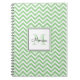 Den bärbara datorn personlig spiral har en trendig sage grönt chevron mönster med eget namn i svartvitt och monogram i matchande sage grönt i vit kvadrat-ram.
