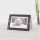 Modern blått Elegant-skript Snöflingor Bokeh Minimalistkort för Helgdag. Skicka semesterhälsningar med anpassade och personlig till vänner, kolleger och familj i enkla, minimalistiska, elegant, roligt, festliga och moderna fotokort! Ett vackert ram av olika guld vinterbakgrund snöflingor på grönten omger ditt foto. Hälsning " God jul " skrivs i elegantens kalligrafi, och i det följande visas anpassningsbarnas meddelande hälsning från din familj namn i modern typografi. Omvänd för att visa en vacker snöflingor vid guld vintern på grönt mönster.