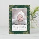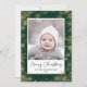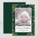 Skicka semesterhälsningar med anpassade och personlig till vänner, kolleger och familj i enkla, minimalistiska, elegant, roligt, festliga och moderna fotokort! Ett vackert ram av olika guld vinterbakgrund snöflingor på grönten omger ditt foto. Hälsning " God jul " skrivs i elegantens kalligrafi, och i det följande visas anpassningsbarnas meddelande hälsning från din familj namn i modern typografi. Omvänd för att visa en vacker snöflingor vid guld vintern på grönt mönster.
