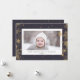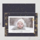 Modern blått Elegant-skript Snöflingor Bokeh Minimalistkort för Helgdag. Skicka semesterhälsningar med anpassade och personlig till vänner, kolleger och familj i enkla, minimalistiska, elegant, roligt, festliga och moderna fotokort! Ett vackert ram av olika guld vinterbakgrund snöflingor på grönten omger ditt foto. Hälsning " God jul " skrivs i elegantens kalligrafi, och i det följande visas anpassningsbarnas meddelande hälsning från din familj namn i modern typografi. Omvänd för att visa en vacker snöflingor vid guld vintern på grönt mönster.