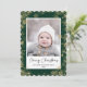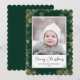 Skicka semesterhälsningar med anpassade och personlig till vänner, kolleger och familj i enkla, minimalistiska, elegant, roligt, festliga och moderna fotokort! Ett vackert ram av olika guld vinterbakgrund snöflingor på sadelbakgrunden i grönten omger ditt foto på scallop kant papper. Hälsning " God jul " skrivs i elegantens kalligrafi, och i det följande visas anpassningsbarnas meddelande hälsning från din familj namn i modern typografi. Omvänd för att visa en vacker snöflingor vid guld vintern på grönt mönster.