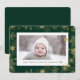 Skicka semesterhälsningar med anpassade och personlig till vänner, kolleger och familj i enkla, minimalistiska, elegant, roligt, festliga och moderna fotokort! Ett vackert ram av varierande guld vinterbakgrund snöflingor på grönten omger ditt foto på kant papper. Anpassningsbarna hälsning "God jul och din familj namn har modern typografi. Omvänd för att visa en vacker snöflingor vid guld vintern på grönt mönster.