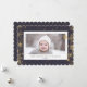 Modern blått Elegant-skript Snöflingor Bokeh Minimalistkort för Helgdag. Skicka semesterhälsningar med anpassade och personlig till vänner, kolleger och familj i enkla, minimalistiska, elegant, roligt, festliga och moderna fotokort! Ett vackert ram av olika guld vinterbakgrund snöflingor på grönten omger ditt foto. Hälsning " God jul " skrivs i elegantens kalligrafi, och i det följande visas anpassningsbarnas meddelande hälsning från din familj namn i modern typografi. Omvänd för att visa en vacker snöflingor vid guld vintern på grönt mönster.