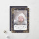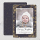 Modern blått Elegant-skript Snöflingor Bokeh Minimalistkort för Helgdag. Skicka semesterhälsningar med anpassade och personlig till vänner, kolleger och familj i enkla, minimalistiska, elegant, roligt, festliga och moderna fotokort! Ett vackert ram av olika guld vinterbakgrund snöflingor på grönten omger ditt foto. Hälsning " God jul " skrivs i elegantens kalligrafi, och i det följande visas anpassningsbarnas meddelande hälsning från din familj namn i modern typografi. Omvänd för att visa en vacker snöflingor vid guld vintern på grönt mönster.