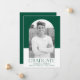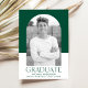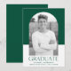 Ett enkelt och snyggt studenten-meddelande med student-foto inuti ett båge ram med grönt och vit färg-blockbakgrund. "Student" visas i grönt med ett modernt brev med namn, skolan och studenten som visas nedan.