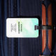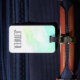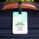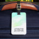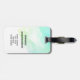 Ett bagagemärke med en abstrakt gräns längst upp med grönt och blått snabbt färg. En mjuk och summerande design. Ett lätt korsar struktur bakom bilden.