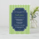 Modern Grönt för Elegant och blå Chevron-Möhippa Inbjudningar