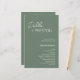 Det moderna bröllopsprogrammet för oliv grönt grönt/sage som har en enkel och minimal utformning med bridens namn i ett elegant-skript och rummets namn i en contemporary sans serif-teckensnitt. Nedan i det nedre hörnet av högerna finns din händelseinformation och ceremonin i en minimalistisk layout. Baksidan har din bröllopsfest och tack för ditt budskap.