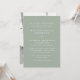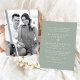 Fira kärlek med den här inbjudan till ett tidslöst bröllop som innehåller fet vit text och elegantens kalligrafiaccenter på en mjuk grönt. Perfekt för modernt och formellt bröllop, den minimalistiska utformningen exuderar klassisk charm med en contemporary beröring. I baksidan visas parets bild av lodräts förlovning och du får en personlig och uppriktig detalj i ditt meddelande. Det är ett utmärkt anpassade att återspegla ert unika stil, denna inbjudan till presenter på ett förträffligt sätt och på ett sofistikerat och minnesvärt sätt.