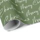 Modern julklapp papper med en grönt baksida med säsonhälsningarna "god jul" spridda över den.