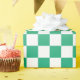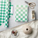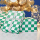 Modern belysning i mörk grönt övertoning och vitt schackat mönster tillför presenter ett färgstarkt accent. Om du vill visa den geometriska ombrédesignen för andra objekt klickar du på länken "Rocklawn Arts". © Claire E. Skinner, Med reserverade Höger.