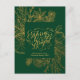 Modern Grönt Gräs Bough Blommigt Elegant Guld Script Helgdag Card. Skicka semesterhälsningar med anpassade och personlig till vänner, kolleger och familj med detta moderna och elegant icke-fotodesignkort för festliga, naturliga minimalistiska stil-kort! Ett vackert grönt blad i blommigt med citrus, kanel, klockor, holly och gräs träd löv, ram som omger semesterhälsningar av " Merry and Bright " i elegantens kalligrafi. I grund finns anpassningsbar hälsning-budskapet från er familj namn i modern typografi