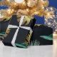 En modern elegant, tropiska löv, i grönt och guld, med midnattsblå bakgrund. Den här pappra inslagningen kan användas hela året för dina ge presentögonblick. Vare sig det är jul, årsdagar, födelsedagar eller bara ett tack för att du är min vän närvarande.