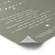 Med vår elegant Sage Grönt i Loving Memory Bröllop Sign, hedra dina nära vänner. Den här minimalistiska designen har en bakgrund i grönten på serene sage och ett känsligt skript som skapar ett hjärtligt erkännande. Anpassa onlinen så att den inkluderar namn och data och välj bland olika storlekar för att passa din dekorfärg. Perfekt för att lägga till lite minne till din speciella dag