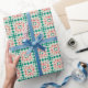 Den här snyggten som omsluter pappra har en modern geometrisk ladugårdshöjd som blockerar mönster i en julpalett med rött och grönt i färg.