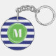 Trendig och modern nyckelkedja med blå rand mönster och monogram inuti en abstrakt för grönt. Underbar presentidé för födelsedag, partiförmån, Mors dag, Fars dag, Alla hjärtans dag eller något speciellt tillfälle. Enkel att anpassa genom att klicka på knappen Anpassa.