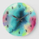En klocka med en abstrakt utformning av coola och snyggt. Vattenfärger blandas och blandas för att skapa illusionen av en rymdbild. Grönt med lila-, gult- och ljusröd blandning tillsammans med en smatning av vita punkter och stjärnor. Ett konstnärligt skapande av elegant.