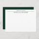 Ett elegant modernt anteckningskort med anpassadet "från skrivbordet" och namn-mallar i mörk grönt och vitt.